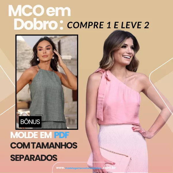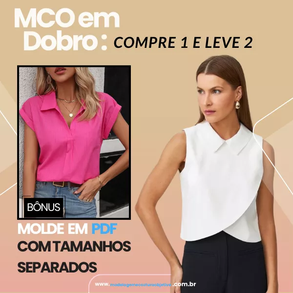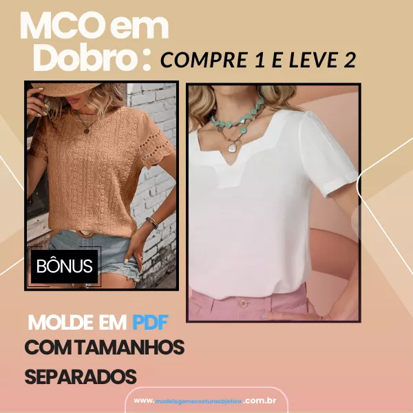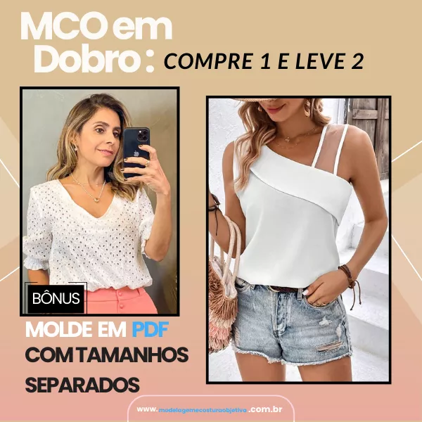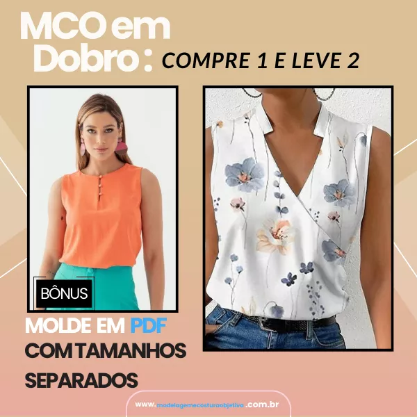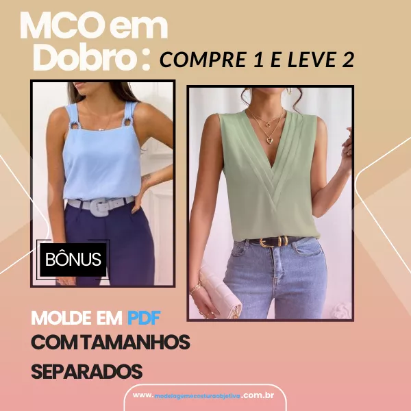 Molde de Blusa sem Mangas com Decote V + Bônus de Blusa com Decote Quadrado e Alça Larga com Argola
